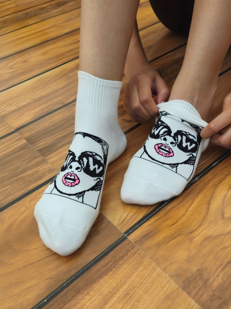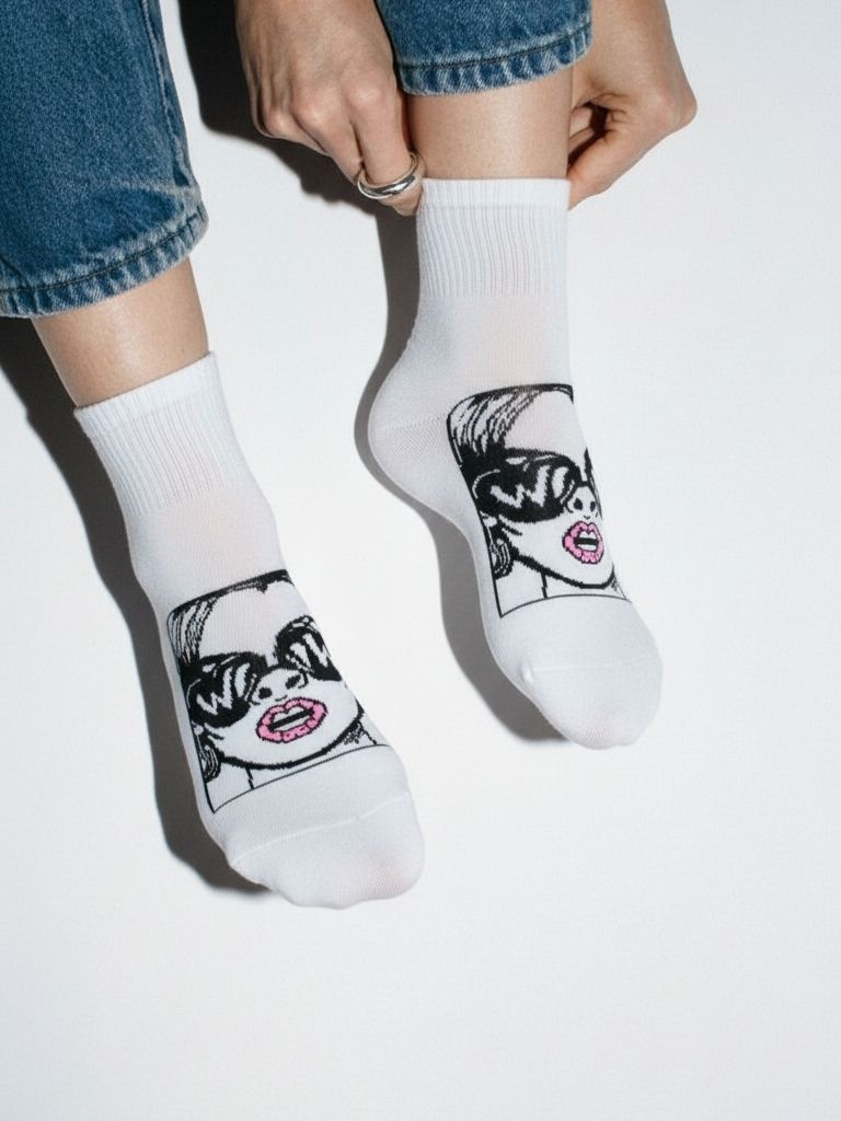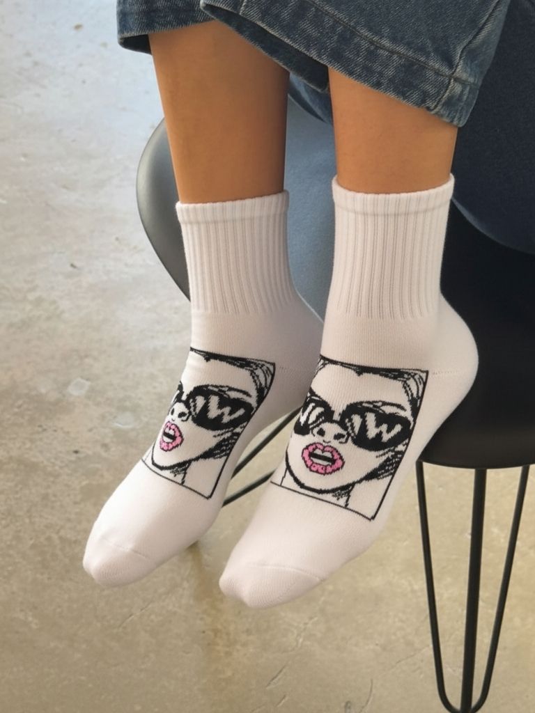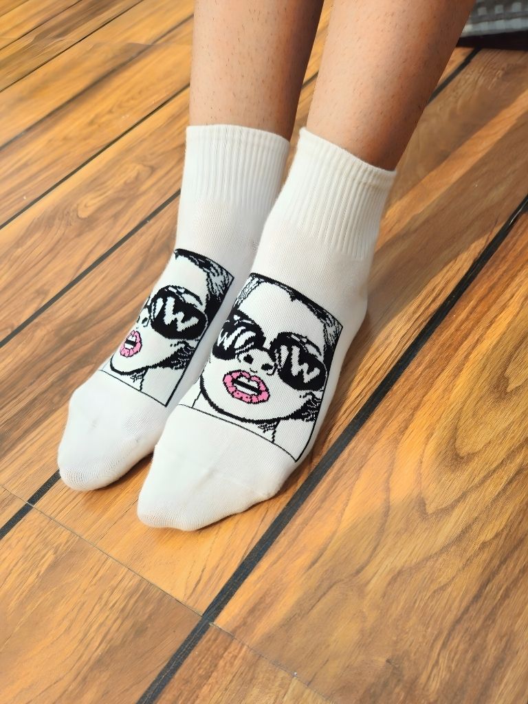 Turn every step into a statement with the Mrs WOW Socks — These premium socks feature a high-definition pop-art graphic of Mrs WOW, complete with oversized “WOW” sunglasses and glossy lips, adding instant personality and attitude to your outfit.